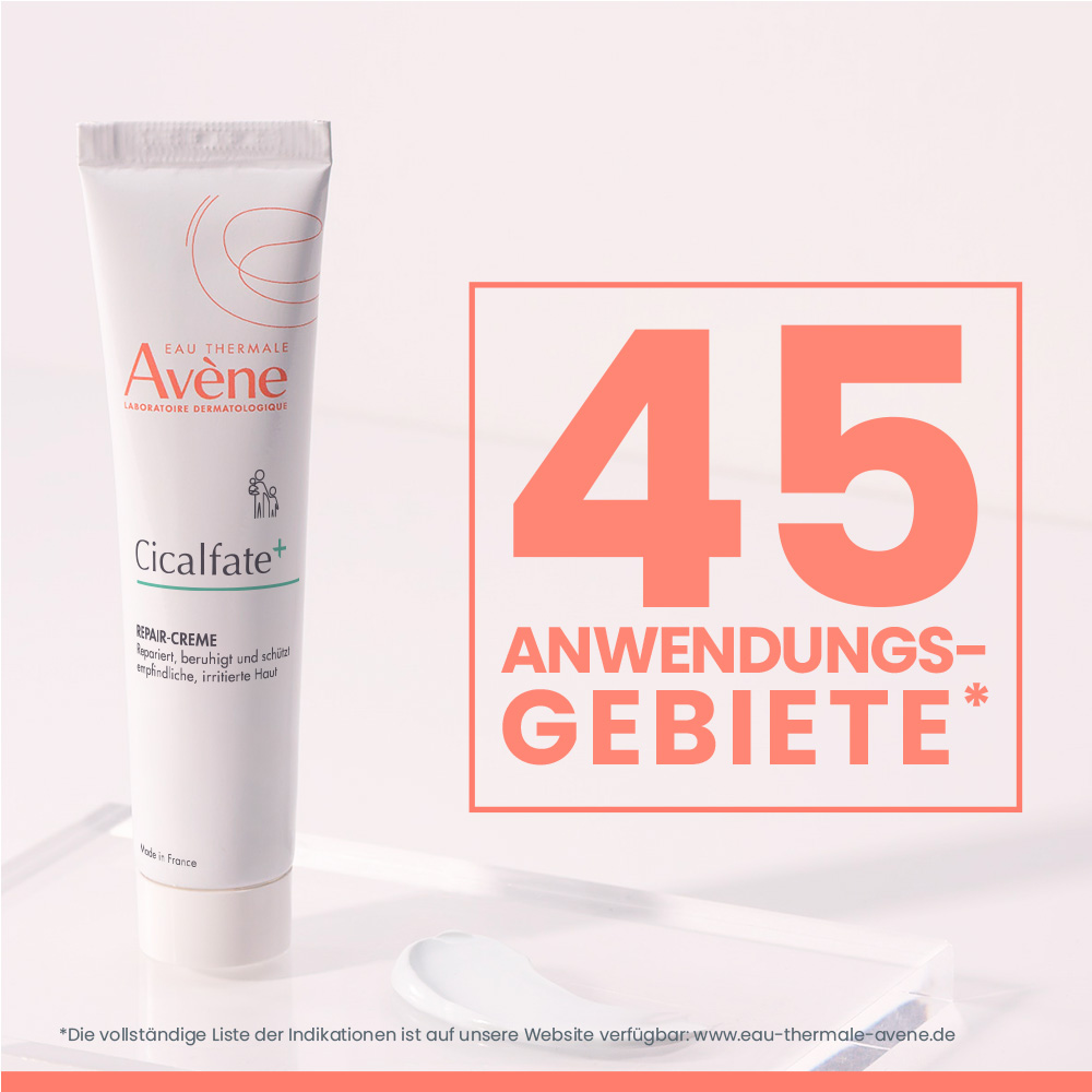 Die Cicalfate+ Repair-Creme eignet sich für ein breites Spektrum unterschiedlicher Indikationen (45 Anwendungsgebiete**). Sie hilft bei allen leichten, oberflächlichen Verletzungen der Haut. Dazu gehören unter anderem Hautirritationen, oberflächliche Verbrennungen, oberflächlicher Sonnenbrand, Akne, Windeldermatitis bei Babys, sichtbare Rötungen, Rasurbrand, Kratzer und Abschürfungen. Auch nach oberflächlichen dermatologischen Eingriffen wie Laserbehandlungen oder Tattooentfernungen ist die Creme hilfreich.