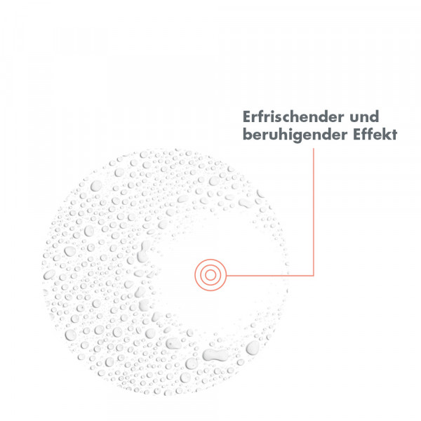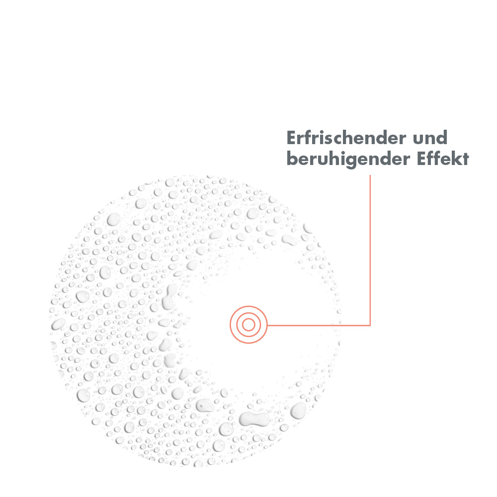 Der mikrofeine Sprühnebel erfrischt gestresste und irritierte Haut, wirkt sofort hautberuhigend und reizlindernd. Empfindliche und zu Trockenheit neigende Haut erhält Feuchtigkeit, wird spürbar weicher und widerstandsfähiger.