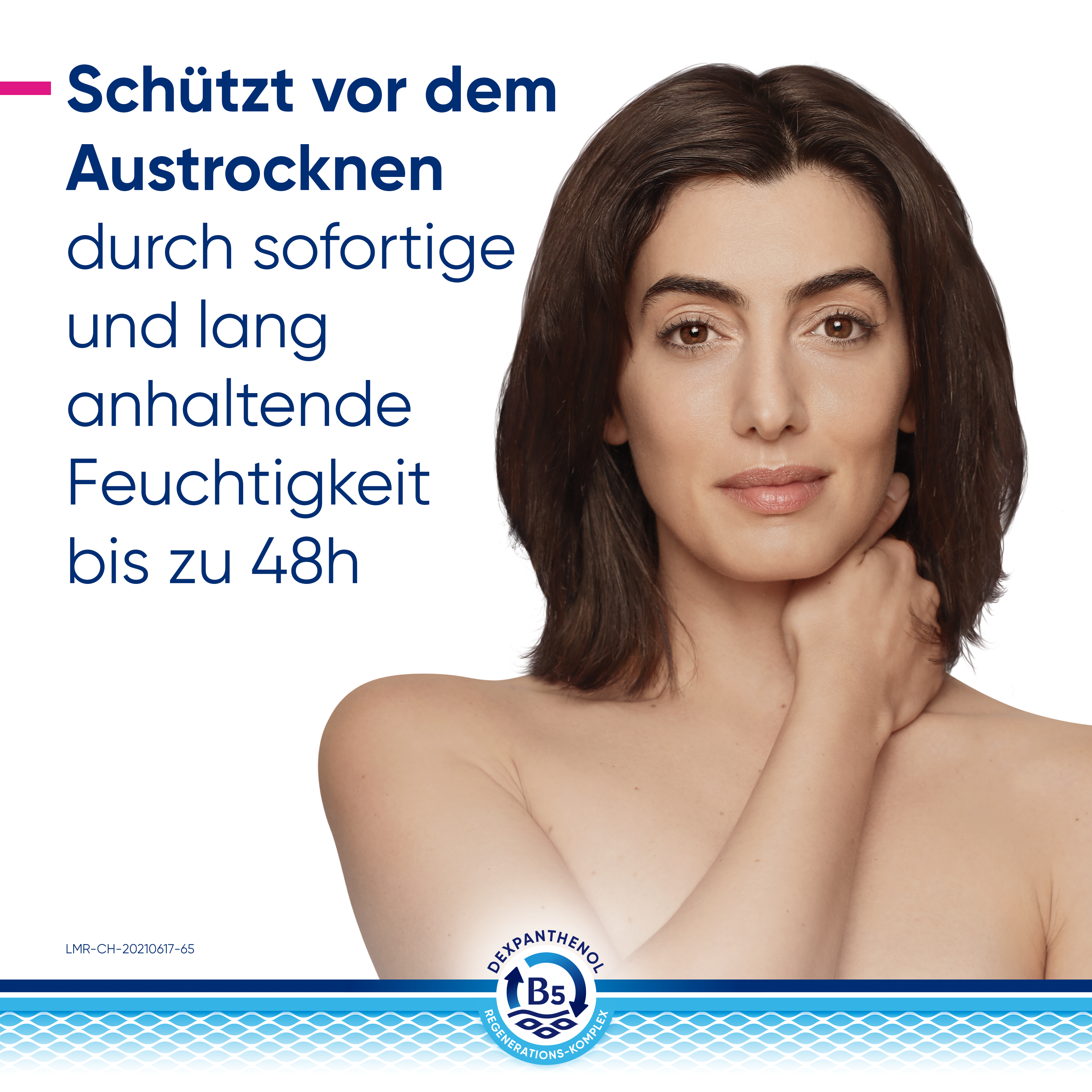 Der B5-Regenerations-Komplex unterstützt die Regeneration der Haut – von innen nach außen. Dabei fördert Dexpanthenol in tieferen Hautschichten der Epidermis die natürliche Zellregeneration. Das enthaltene Glycerin spendet sofortige und lang anhaltende Feuchtigkeit. Niacinamid (Vitamin B3) beruhigt juckende, trockene Haut und natürliche Lipide wie Sheabutter und Arganöl ergänzen fehlende Hautlipide. Das physiologische Lipid unterstützt zusätzlich die Anordnung der Doppellipidschicht.