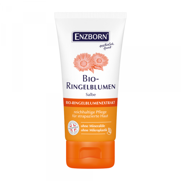 ENZBORN Bio Ringelblumensalbe schützt die Haut und spendet reichhaltige Pflege. Die Formulierung mit Ringelblumenextrakt Panthenol und Provitamin regeneriert nachhaltig empfindliche und strapazierte Haut und mindert Hautreizungen.