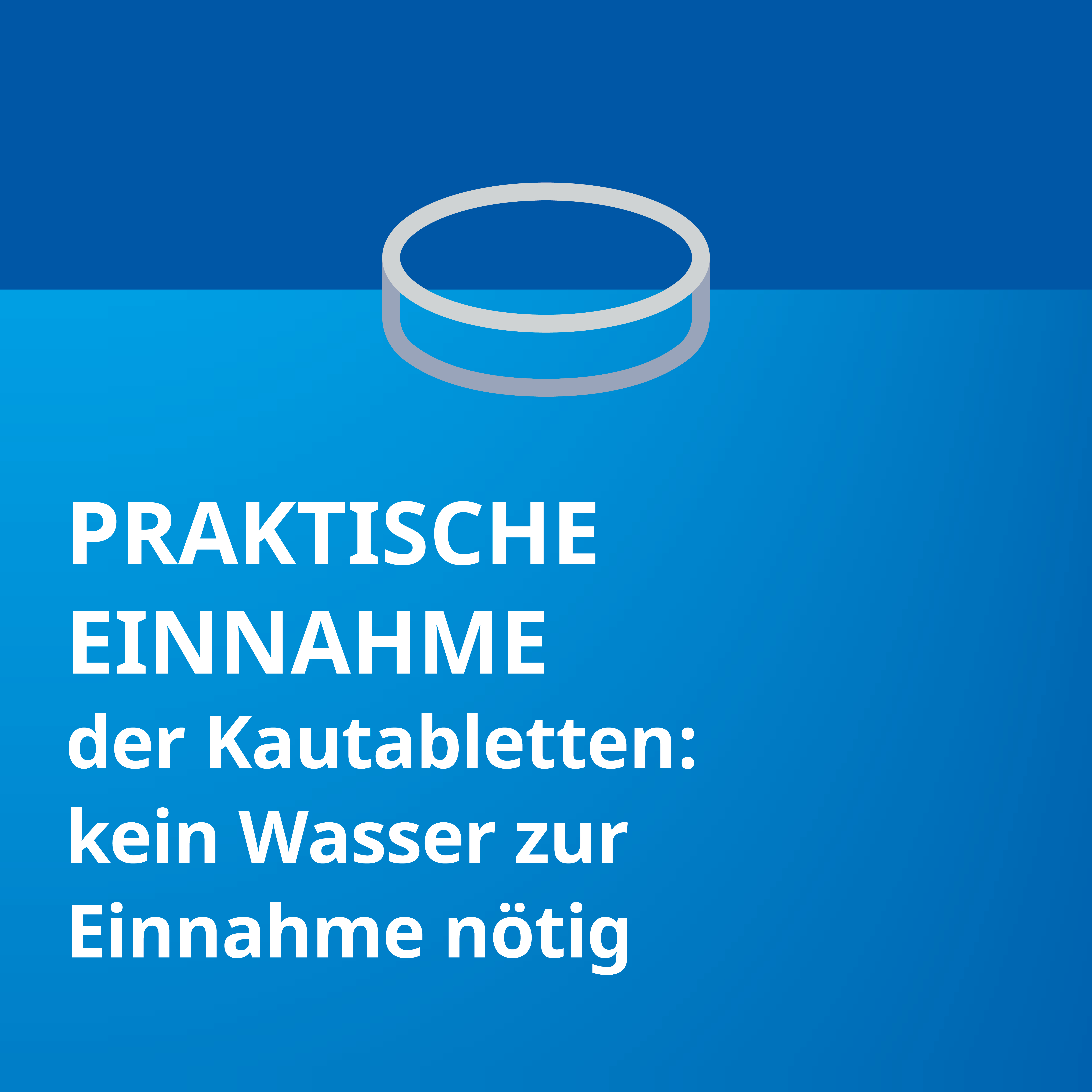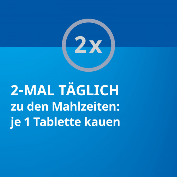 Die Einnahme ist einfach: Es wird empfohlen, 2-mal täglich eine Tablette zu einer Mahlzeit einzunehmen. Die praktischen Kautabletten können überallhin mitgenommen und problemlos, z. B. während der Arbeitszeit, eingenommen werden. Die Dauer der Einnahme richtet sich nach der Anordnung des Arztes