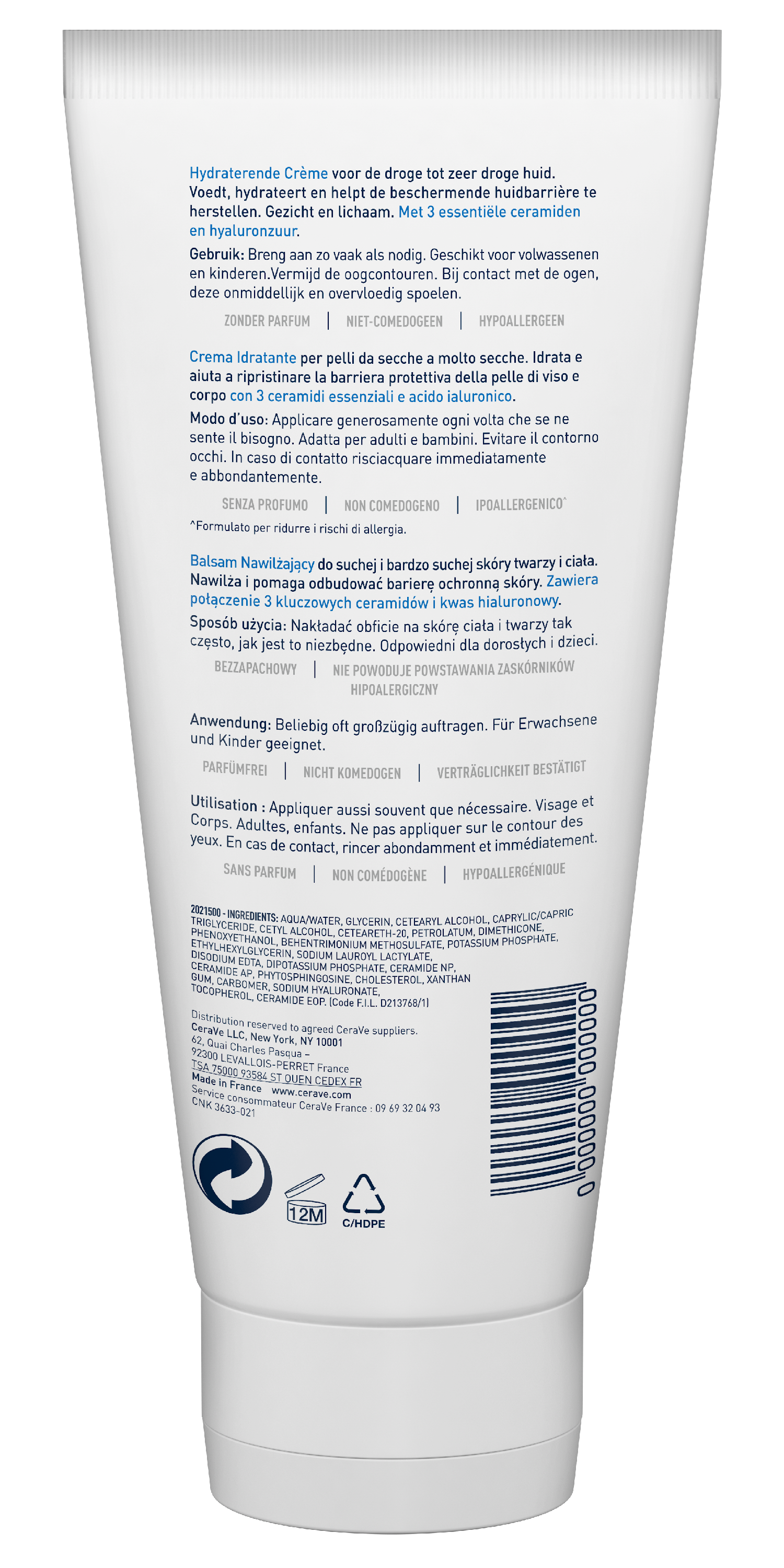 Reichhaltige Feuchtigkeitspflege für die ganze Familie Die CeraVe Feuchtigkeitscreme für Gesicht und Körper hydratisiert die Haut, beugt Austrocknung vor und stärkt die Hautschutzbarriere. CeraVe Feuchtigkeitscreme für trockene bis sehr trockene Haut Die Hautpflege zeichnet sich durch ihre patentierte MVE-Wirkstoff-Freisetzung aus, die die aktiven Wirkstoffe über den Tag verteilt freisetzt. Dank Hyaluron und drei essenziellen Ceramiden wird die Haut kontinuierlich mit Feuchtigkeit versorgt und die natürliche Hautschutzbarriere gestärkt – für ein angenehm weiches Hautgefühl. Die CeraVe Feuchtigkeitscreme enthält keine Dufstoffe und eignet sich auch bei Neurodermitis und für Allergiker.