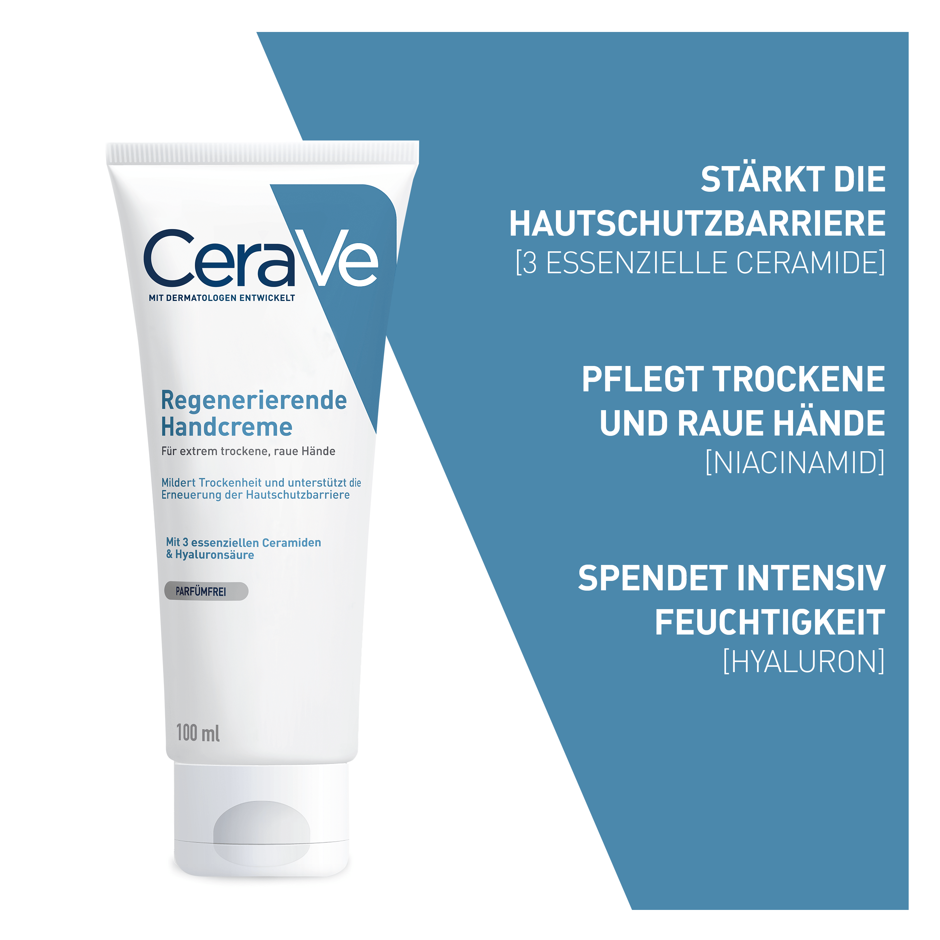 CeraVe Regenerierende Handcreme enthält eine Kombination aus drei essenziellen Ceramiden 1, 3 und 6-II, die die besonders angegriffenen und trockenen Hände beim Aufbau einer gesunden Hautschutzbarriere unterstützt. Die aktiven Wirkstoffe wie Ceramide und Hyaluron werden durch die patentierte Wirkstoff-Freisetzung über den Tag freigesetzt und geben der trockenen Haut ihr Wohlbefinden zurück.