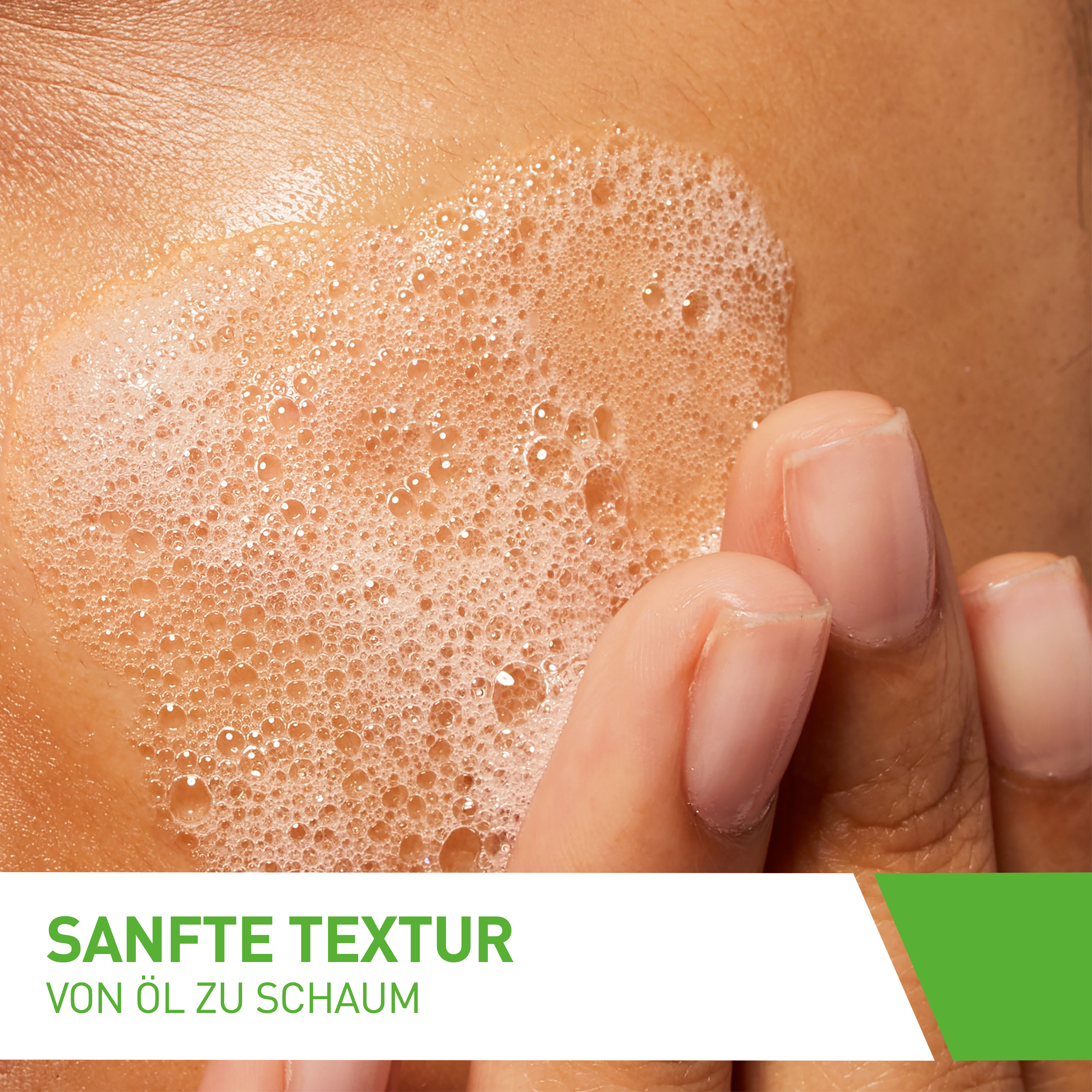 - Unmittelbar nach dem Auftragen verwandelt sich das Öl in einen weichen Schaum, der ein erfrischtes und gepflegtes Hautgefühl zurücklässt.