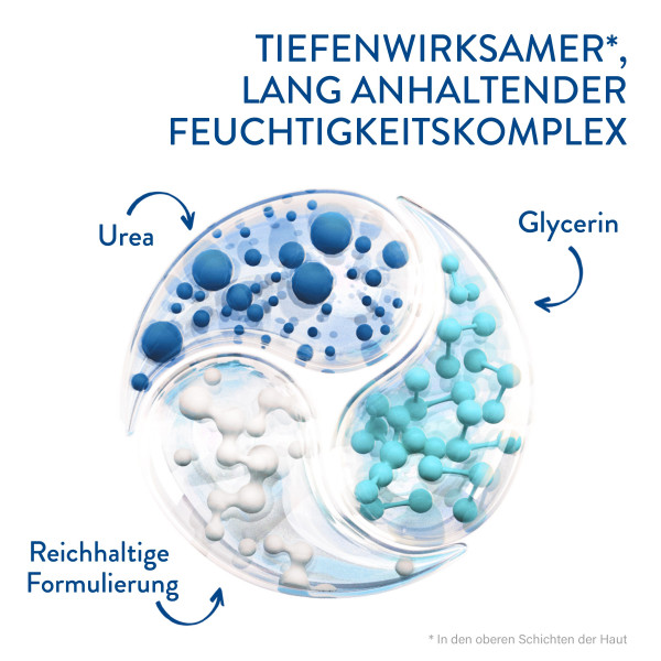 - Urea sorgt für eine tiefenwirksame und lang anhaltende Feuchtigkeitsversorgung