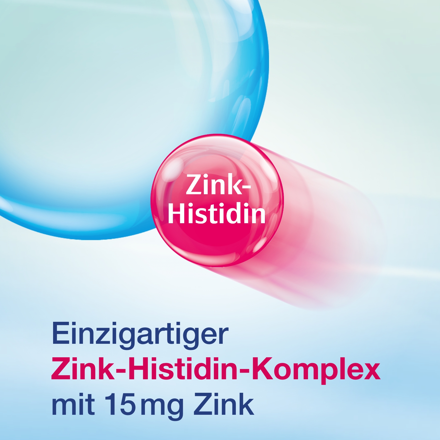 Warum wird Zink an Histidin gekoppelt? Zink wird vom Körper besonders gut aufgenommen, wenn es in einer Verbindung mit der Aminosäure Histidin vorliegt. Curazink® enthält als Wirkstoff schon diese Zink-Histidin-Verbindung.