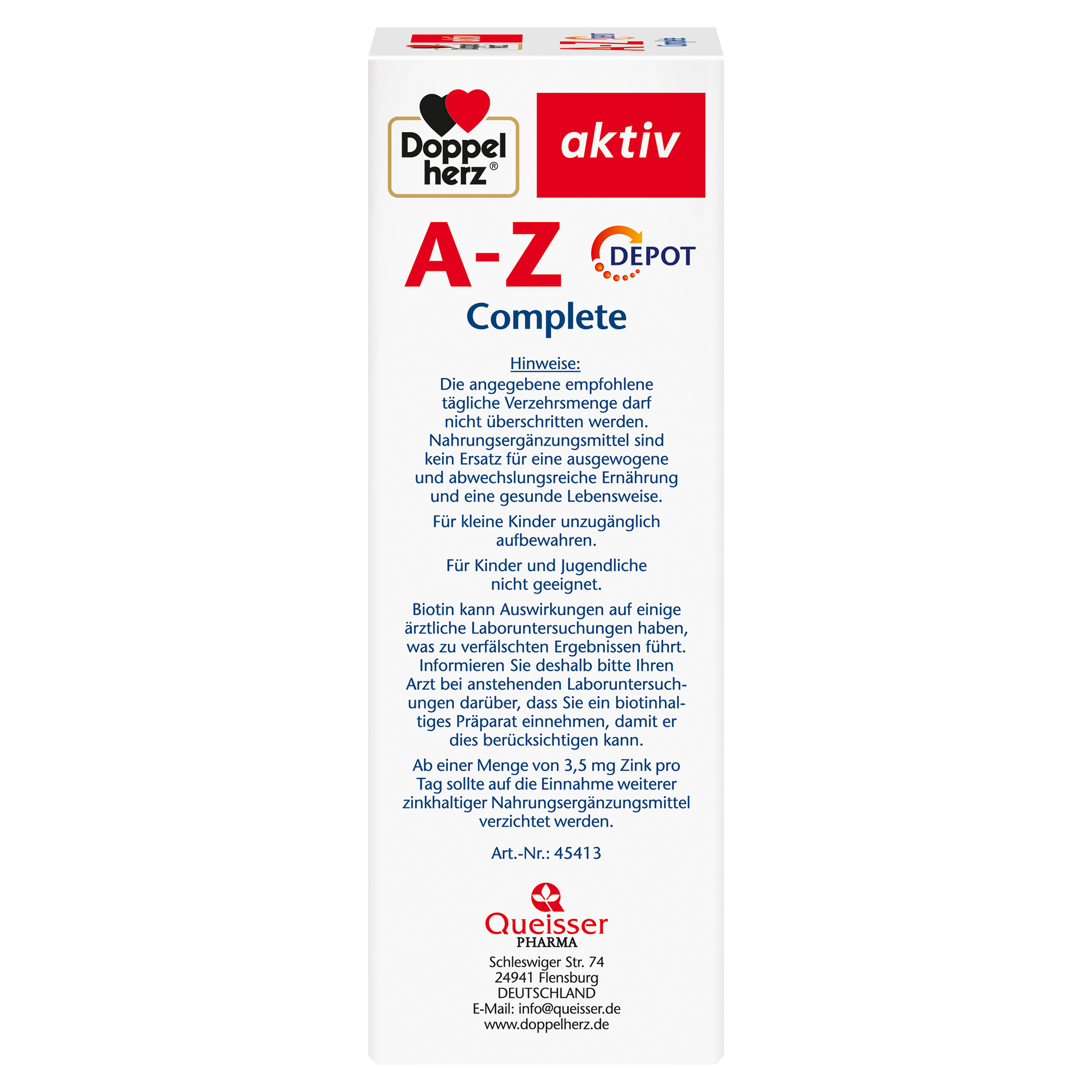 Die A-Z Versorgung mit vielen wichtigen Vitaminen, Mineralstoffen und Spurenelementen: bei einer unausgewogenen Ernährung wird der Körper oft nicht ausreichend mit wichtigen Vitaminen, Mineralstoffen und Spurenelementen versorgt. Außerdem können bestimmte Nährstoffe, wie z.B. die wasserlöslichen Vitamine C, B1, B2 und B6, nur begrenzt im Körper gespeichert werden. Zuviel auf einmal verzehrte Mengen dieser Stoffe werden ungenutzt ausgeschieden und stehen somit in Zeiten höherer Belastung und eines gesteigerten Versorgungsbedarfs nicht mehr zur Verfügung. Dank des von Doppelherz speziell entwickelten Herstellungsverfahrens arbeiten die Depot-Tabletten wie ein Speicher, der die wertvollen Nährstoffe über viele Stunden freigibt und dem Körper so langanhaltend zur Verfügung stellt.