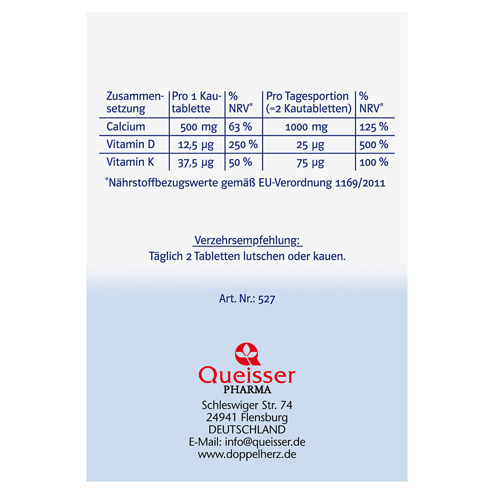 DoppelherzNahrungsergänzungsmittel sind kein Ersatz für eine ausgewogene und abwechslungsreiche Ernährung und eine gesunde Lebensweise. Die angegebene empfohlene tägliche Verzehrsmenge darf nicht überschritten werden. Außerhalb der Reichweite von kleinen Kindern aufbewahren.