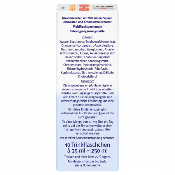 • Im praktischen Trinkfläschchen mit leckerem Multifruchtgeschmack