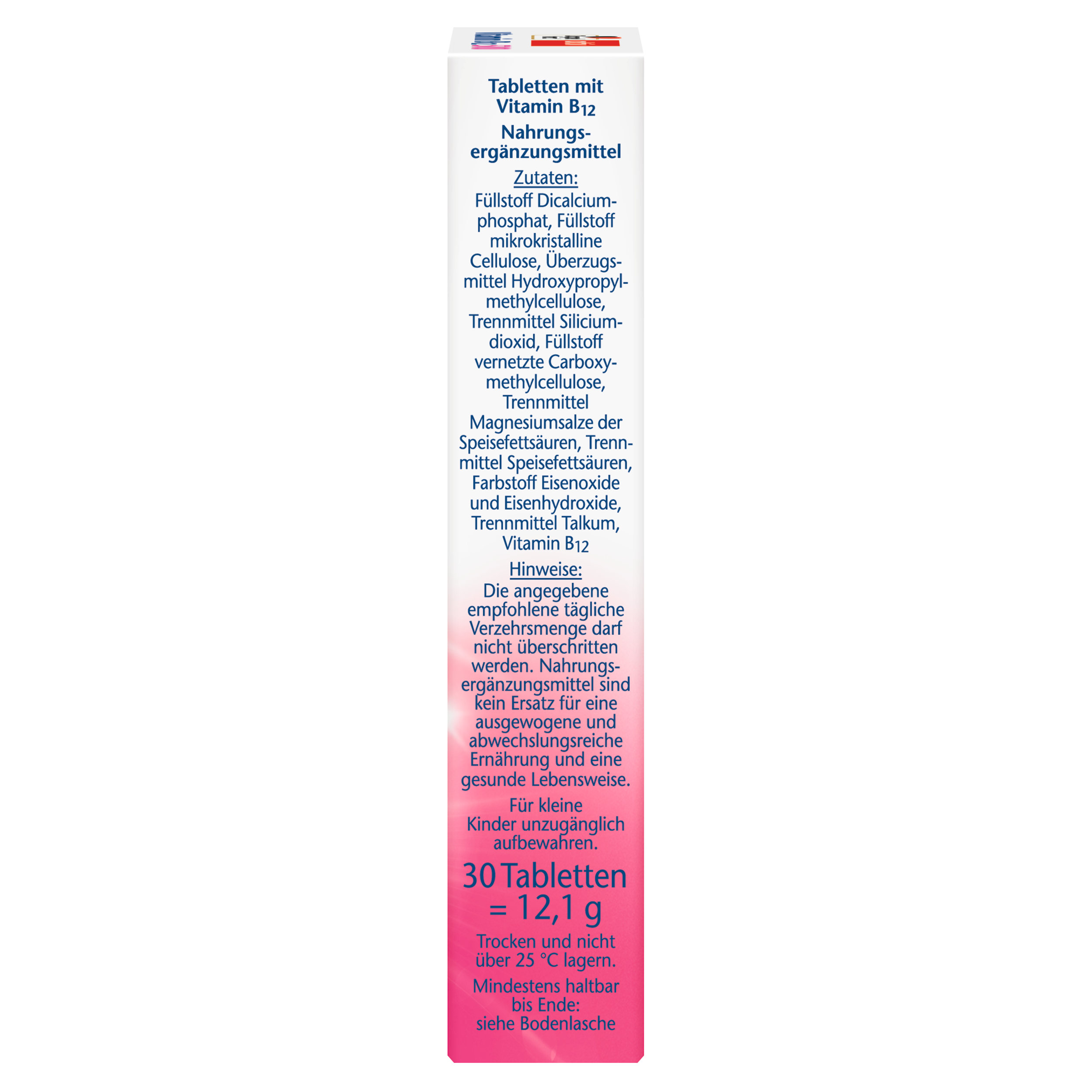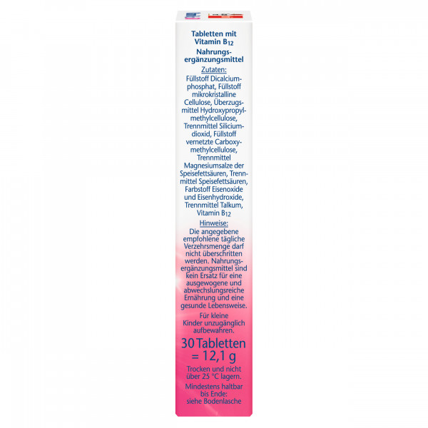 - Hochdosiert: 500 µg Vitamin B12 pro Mini-Tablette