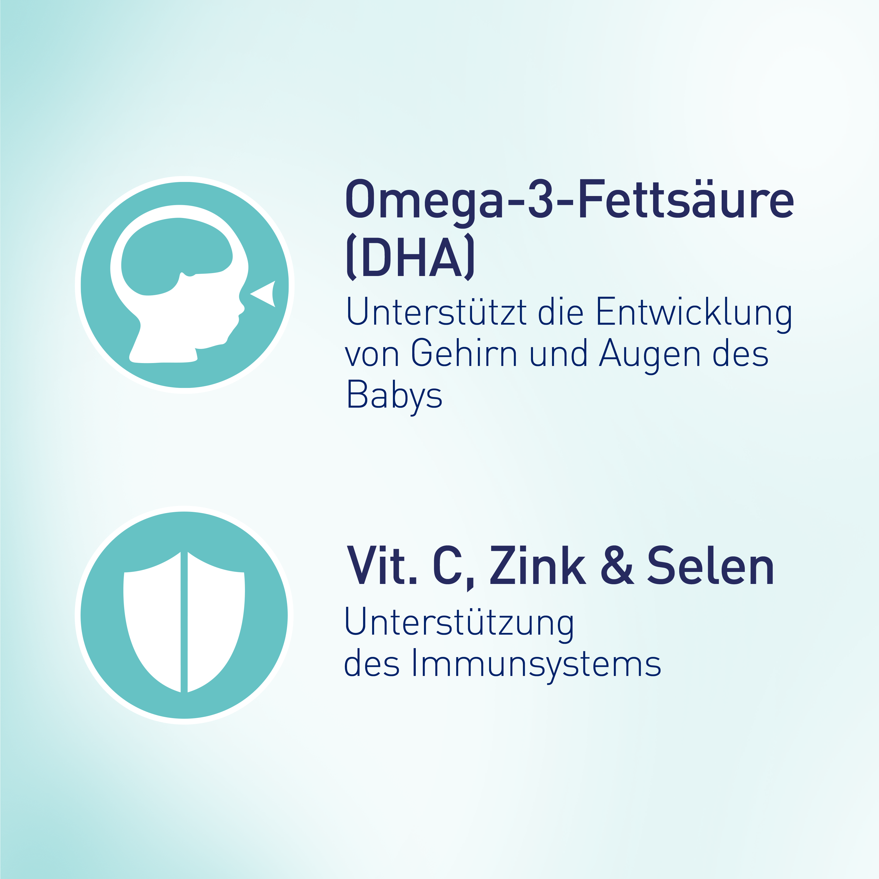 • Weitere Inhaltstoffe: Folsäure, Jod, Omega-3-Fettsäure EPA, Lutein, Pantothensäure, Niacin, Provitamin A, sowie die Vitamine B1, B2 und E