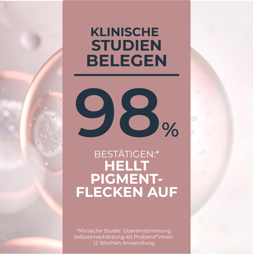 Die klinisch und dermatologisch geteste Creme reduziert Pigmentflecken am Körper und postinflammatorische Hyperpigmentierung. Zudem glättet die Hautpflege verdickte Hautstellen an Reibungsflächen. Erste Ergebnisse sind bereits nach zwei Wochen sichtbar und verbessern sich bei regelmäßiger Anwendung kontinuierlich. Die Haut sieht ebenmäßiger, glatt und strahlend aus.