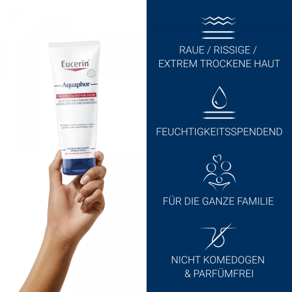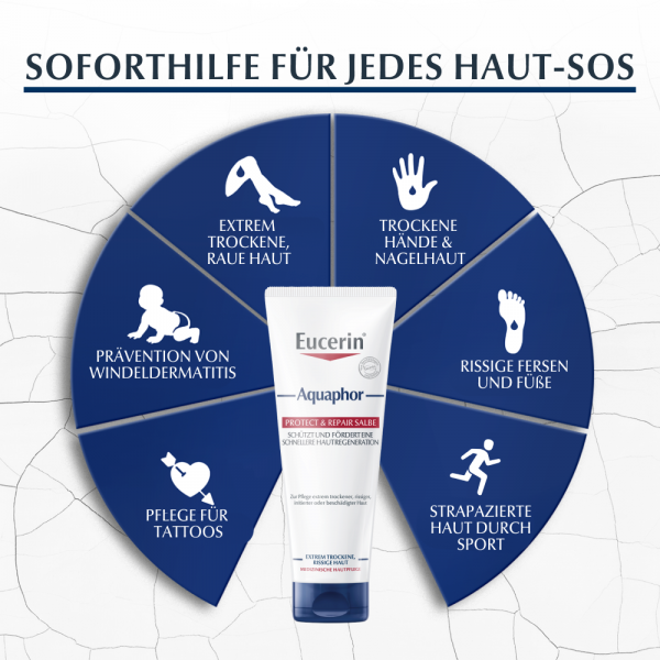 Eucerin Aquaphor ist zudem sanft zu sensibler Babyhaut und eignet sich als Babycreme z. B. bei Kälte oder als Windelcreme, für ""Slugging"" (Maske zum Einschließen der nächtlichen Hautpflege-Produkte) oder als feuchtigkeitsspendende Pflege für Tattoos*.