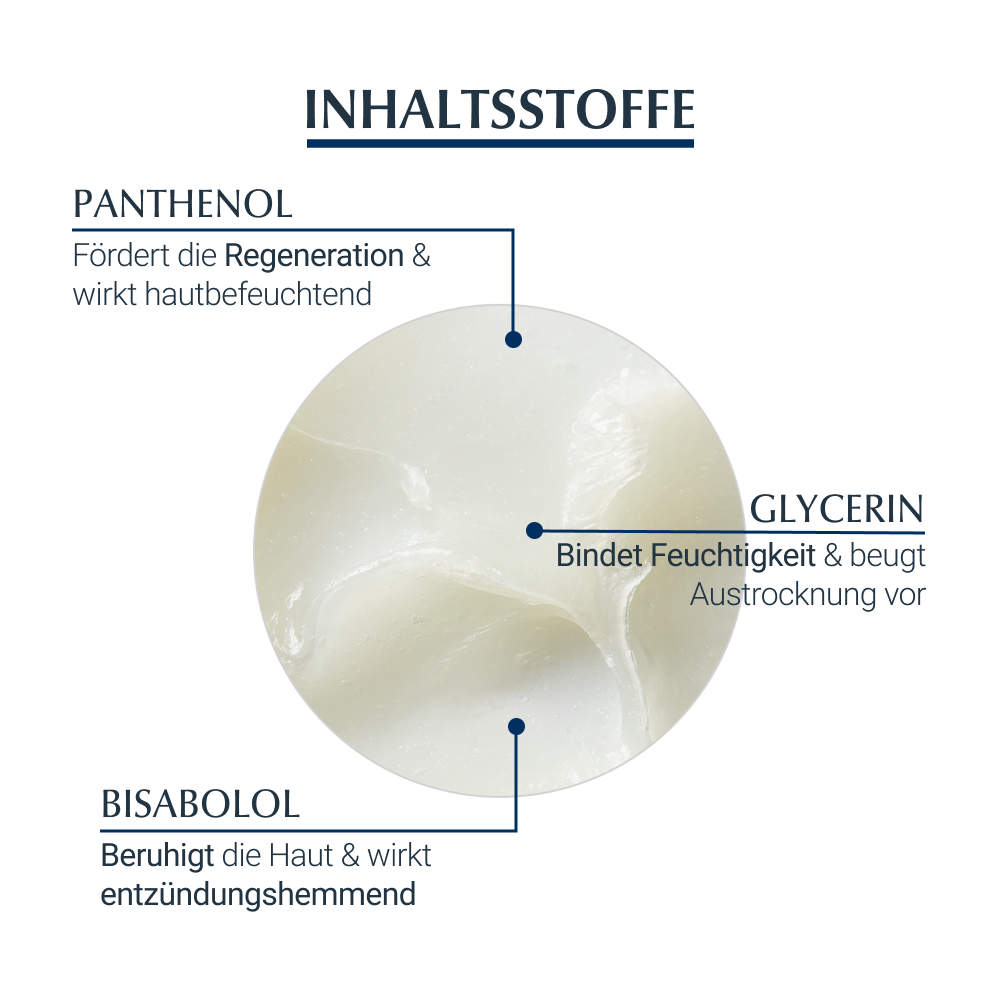 Die Salbe hat ein geringes Irritationspotential, da sie nur 7 ausgewählte Inhaltsstoffe enthält und so sehr gut verträglich ist