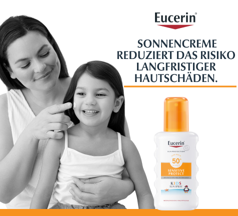 Sonneneinstrahlung kann besonders schädlich für Kinder und Babys sein, da ihre Haut noch sehr empfindlich ist. Das Sensitive Protect Kids Sun Spray LSF 50+ von Eucerin bietet hierfür den idealen Schutz. Mit der ADVANCED SPECTRAL TECHNOLOGY kombiniert der Sonnenschutz UVA/UVB-Filter mit Licochalcone A zur Neutralisierung freier Radikale. So sorgt die Kinder Sonnencreme zuverlässig für HEV- (hochenergetisches sichtbares Licht) und UV-Schutz. Das Sonnenschutzmittel wurde extra für Kinder und Babys entwickelt, um empfindliche Haut zu beruhigen und vor Sonnenbrand sowie langfristigen sonnenbedingten Schäden zu schützen.