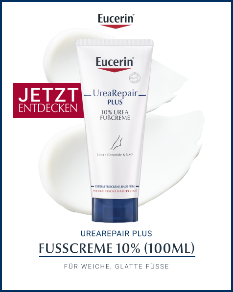 Die Eucerin UreaRepair PLUS Fußcreme 10% spendet intensive Feuchtigkeit bei trockenen bis extrem trockenen Füßen und beruhigt die Haut sofort. Die Hautbarriere wird gestärkt sowie Druckstellen und Verhornung reduziert. Insbesondere auch zur Fußpflege bei Diabetes geeignet.