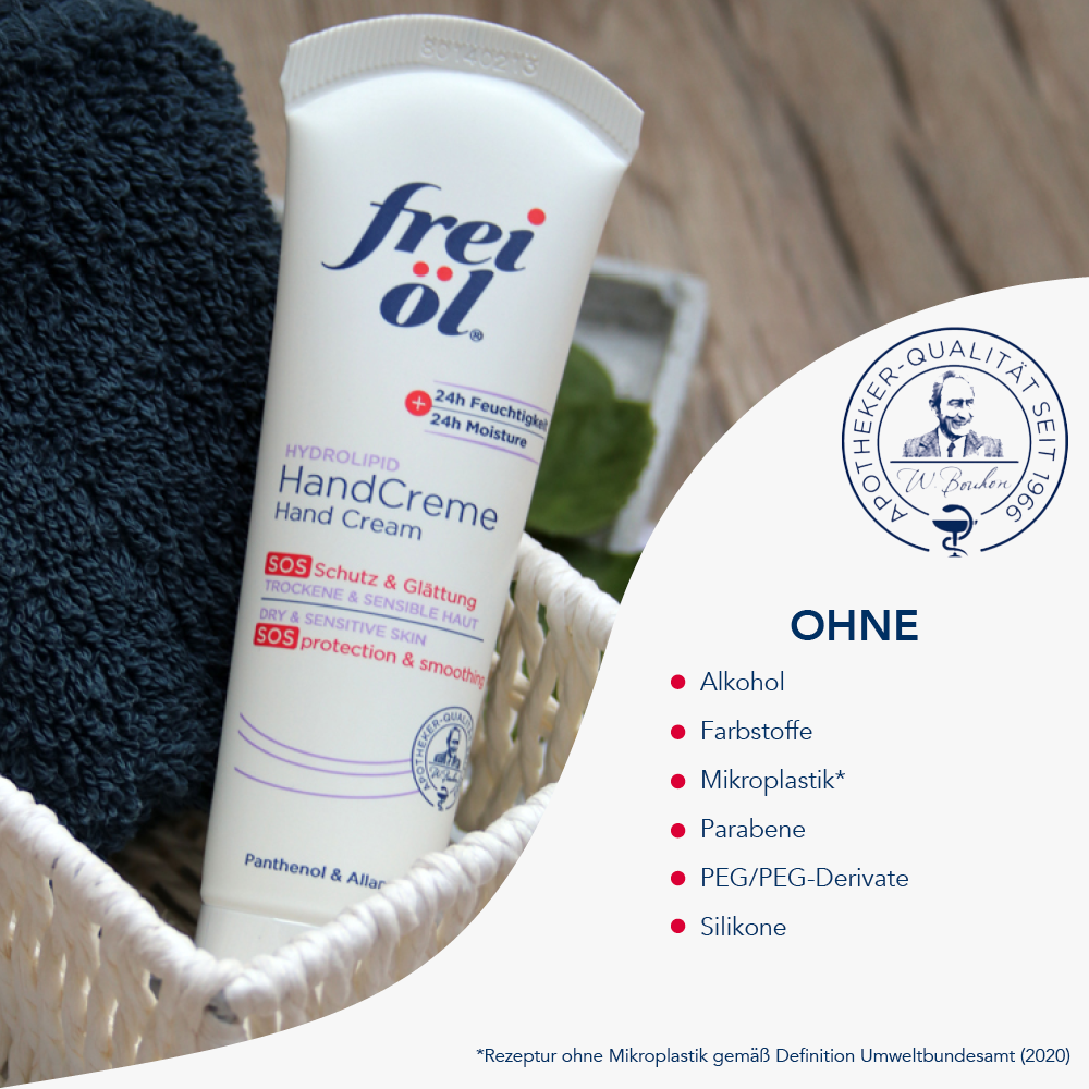 Die glättende frei öl® HYDROLIPID HandCreme - SOS Pflege für strapazierte Hände