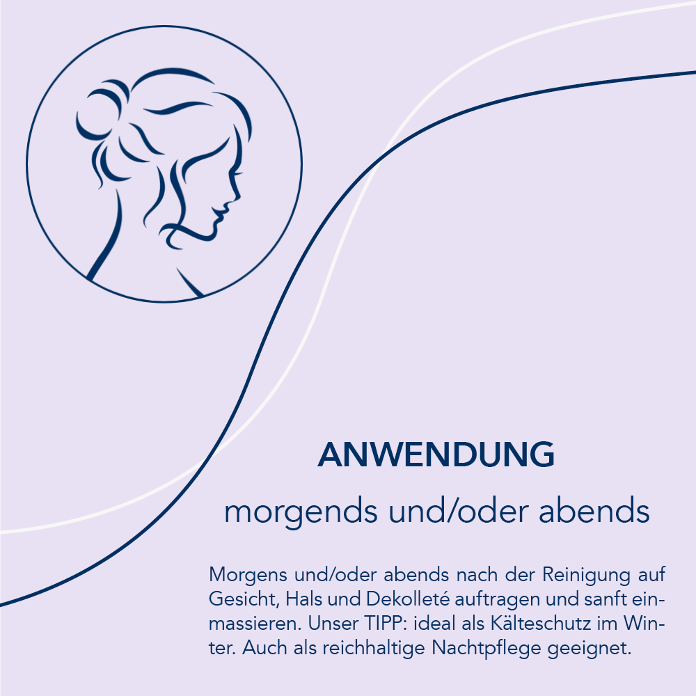 Morgens und/oder abends nach der Reinigung auf Gesicht, Hals und Dekolleté auftragen und sanft einmassieren.