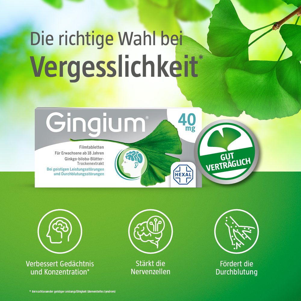 - Gingium® 40 mg verbessert Gedächtnis und Konzentration bei nachlassender geistiger Leistungsfähigkeita