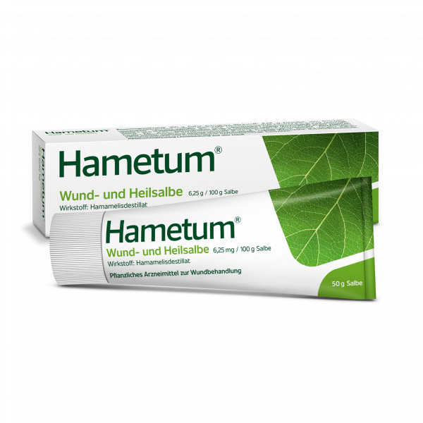 Hametum® Wund- und Heilsalbe eignet sich zur Behandlung kleinerer Verletzungen wie Schürf- und Schnittwunden, gerade auch bei anspruchsvoller reifer Haut. Dafür sorgt der pflanzliche Wirkstoff aus Hamamelis.
