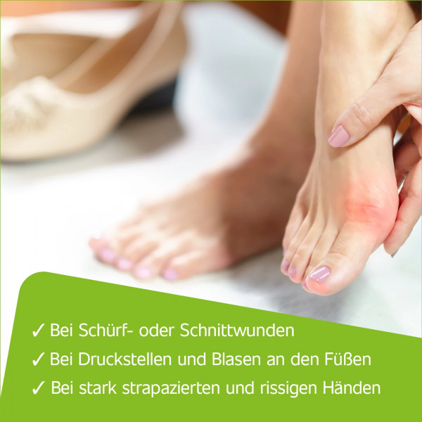 - zur Förderung der Wundheilung reifer Haut, beispielsweise bei Blasen an Füßen oder Händen.