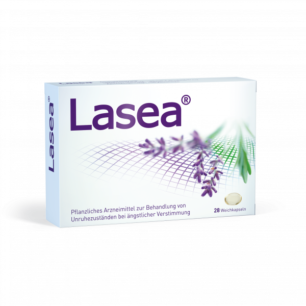 Lasea® Wirkstoff: Lavendelöl. Zur Behandlung von Unruhezuständen bei ängstlicher Verstimmung. Zu Risiken und Nebenwirkungen lesen Sie die Packungsbeilage und fragen Sie Ihren Arzt oder Apotheker.