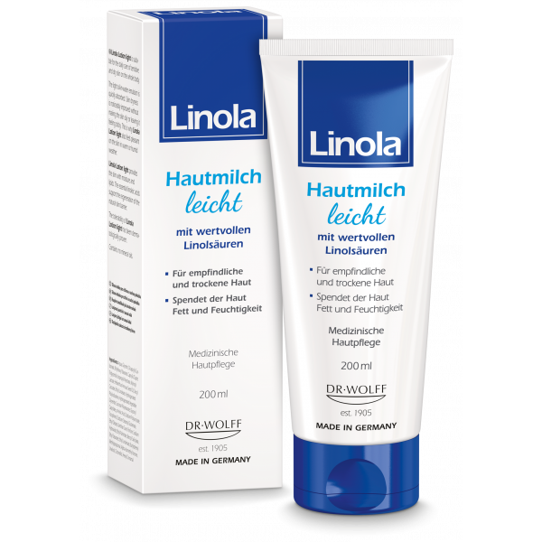 Die Linola Hautmilch leicht wurde für die tägliche Hautpflege von trockener und empfindlicher Haut entwickelt. Sie kann auch als begleitende Basispflege der Haut, z. B. bei Neigung zu Neurodermitis im Sommer, eingesetzt werden. Natürlich kann Linola Hautmilch auch in der Schwangerschaft und Stillzeit sowie schon bei Kindern ab 3 Jahren angewendet werden.