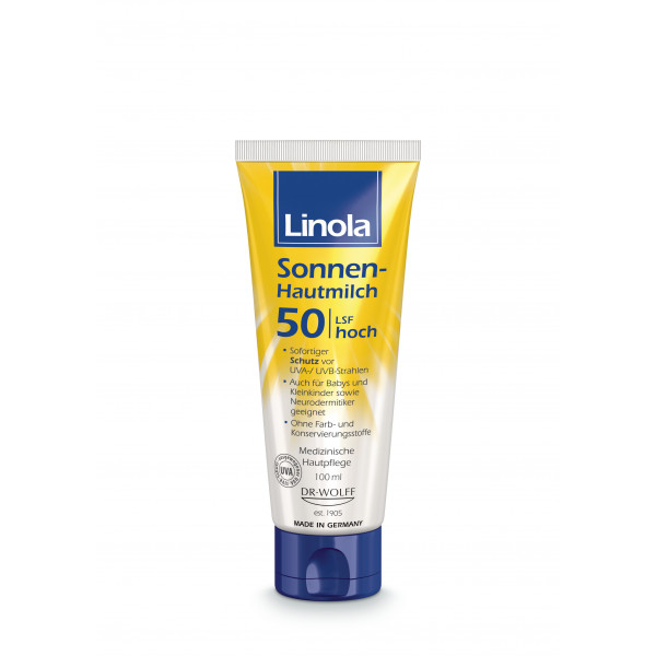 - Auch wasserfeste Präparate wie Linola Sonnen-Hautmilch müssen nach einem längeren Aufenthalt im Wasser sowie nach jedem Abtrocknen mit einem Handtuch erneut aufgetragen werden. • Babys und Kleinkinder bis zum Alter von etwa 3 Jahren sollten vor jeder direkten und längeren Sonnenstrahlung geschützt werden, da ihre Haut viel empfindlicher reagiert. Am besten geeignet hierfür ist das Tragen einer Kopfbedeckung sowie von Kleidung mit speziellem UV-Schutz. Gleichzeitig sollten freie Hautstellen immer durch Sonnenschutzmittel (mindestens LSF 25) geschützt werden.