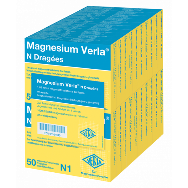 Seit mehr als 65 Jahren bewähren sich Magnesium Verla® N Dragées als Arzneimittel mit höchsten Qualitätsstandards in der Therapie von Magnesiummangelzuständen. Magnesium wird am besten vom Körper aufgenommen, wenn kleinere Mengen über den Tag verteilt eingenommen werden. Durch die niedrige Dosierung von Magnesium Verla® N Dragées sind sie individuell gut dosierbar und können ganz nach Bedarf zu verschiedenen Tageszeiten eingenommen werden. Sie haben einen leckeren Geschmack nach Vanille und lassen sich sehr leicht schlucken. Die magensaftresistenten Dragées sind außerdem gut verträglich. Zusätzlich werden in Magnesium Verla® N Dragées ausschließlich organische Magnesiumverbindungen für eine gute Aufnahme und Bioverfügbarkeit im Körper verwendet.