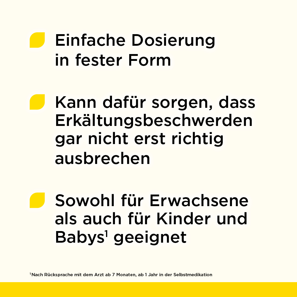 | Säuglinge von 7-12 Monaten | 1 Globuli | bis zu 4-mal täglich (nur nach Rücksprache) | unabhängig von der Mahlzeit |