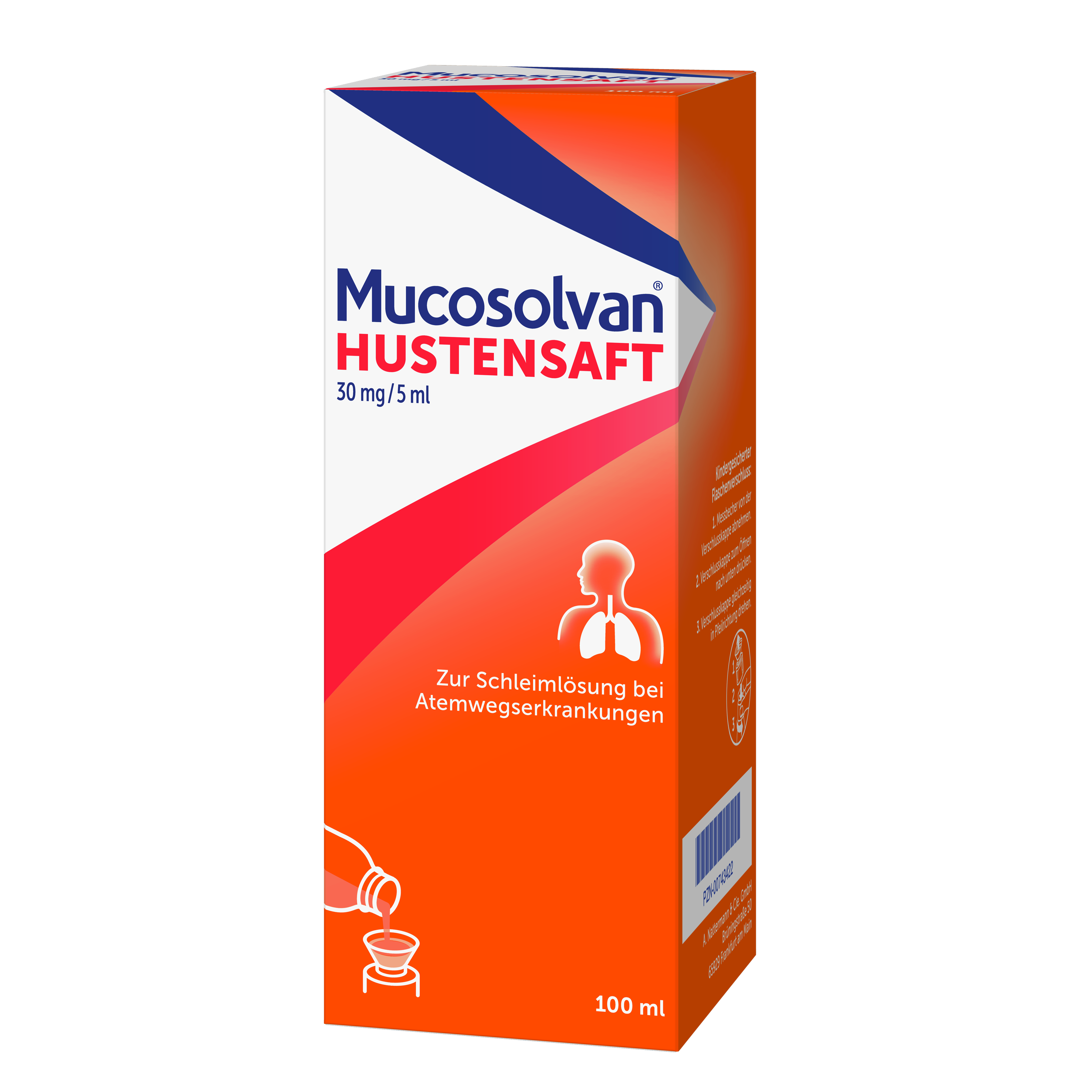 Bei Erkältungen und Bronchitis erleichtert die Einnahme von MUCOSOLVAN® Hustensaft das Abhusten von festsitzendem Schleim und lindert so den akuten Husten. In der beliebtesten Darreichungsform als Hustensaft unterstützt MUCOSOLVAN® die Selbstreinigung der Atemwege und lindert das Begleitsymptom Husten bei akuten und chronischen Atemwegsinfekten.