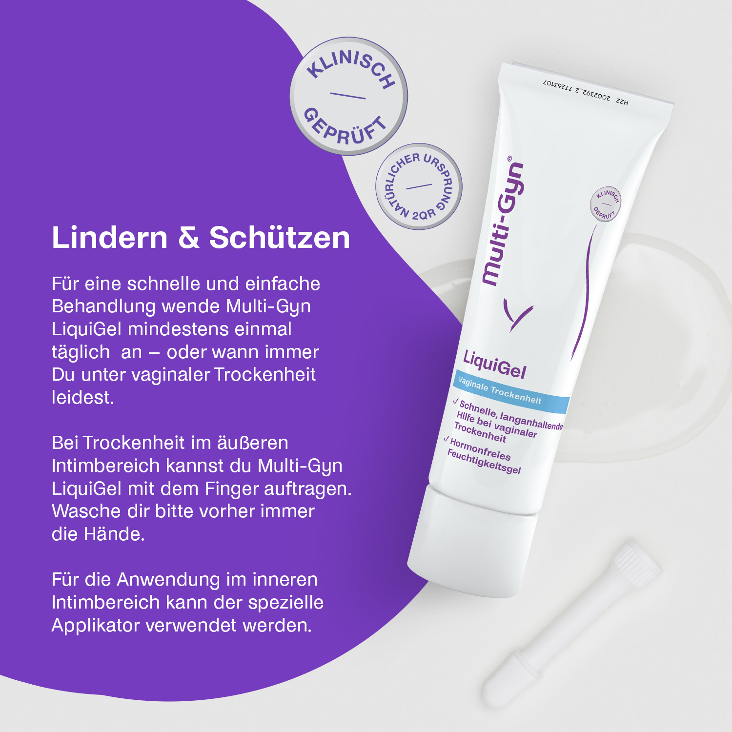• Multi-Gyn LiquiGel fördert die natürliche Befeuchtung der Scheide.