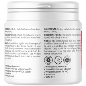 · Das MSM Pulver ist rein und sicher - es kann bedenkenlos als mineralische Nahrungsergänzung über lange Zeit verzehrt werden