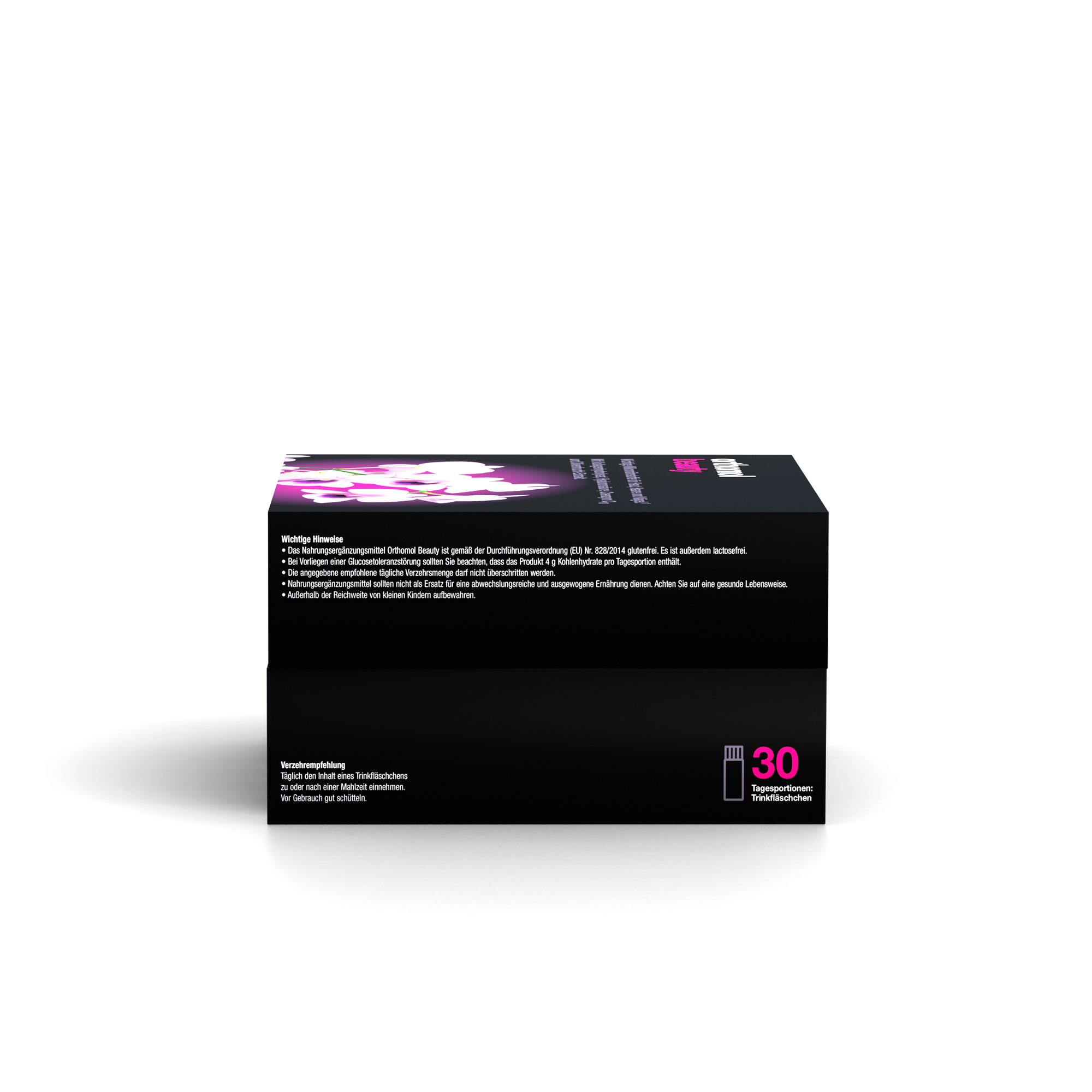 • Orthomol Beauty enthält u. a. sowohl Kollagen-Peptide als auch Hyaluronsäure