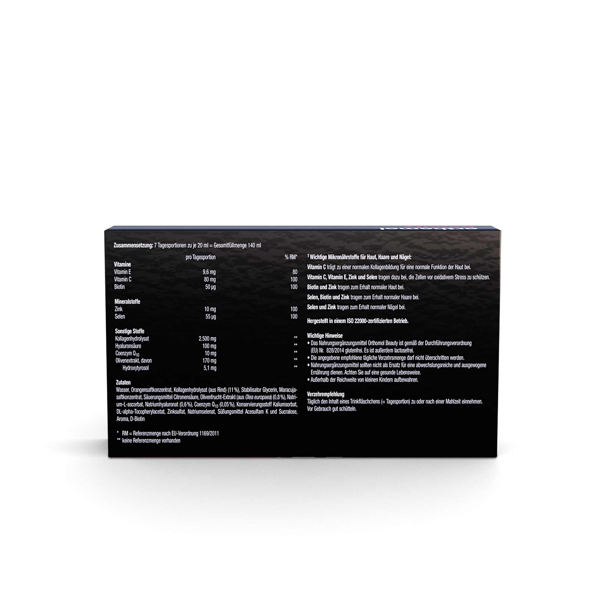 - Orthomol Beauty enthält u. a. sowohl Kollagen-Peptide als auch Hyaluronsäure