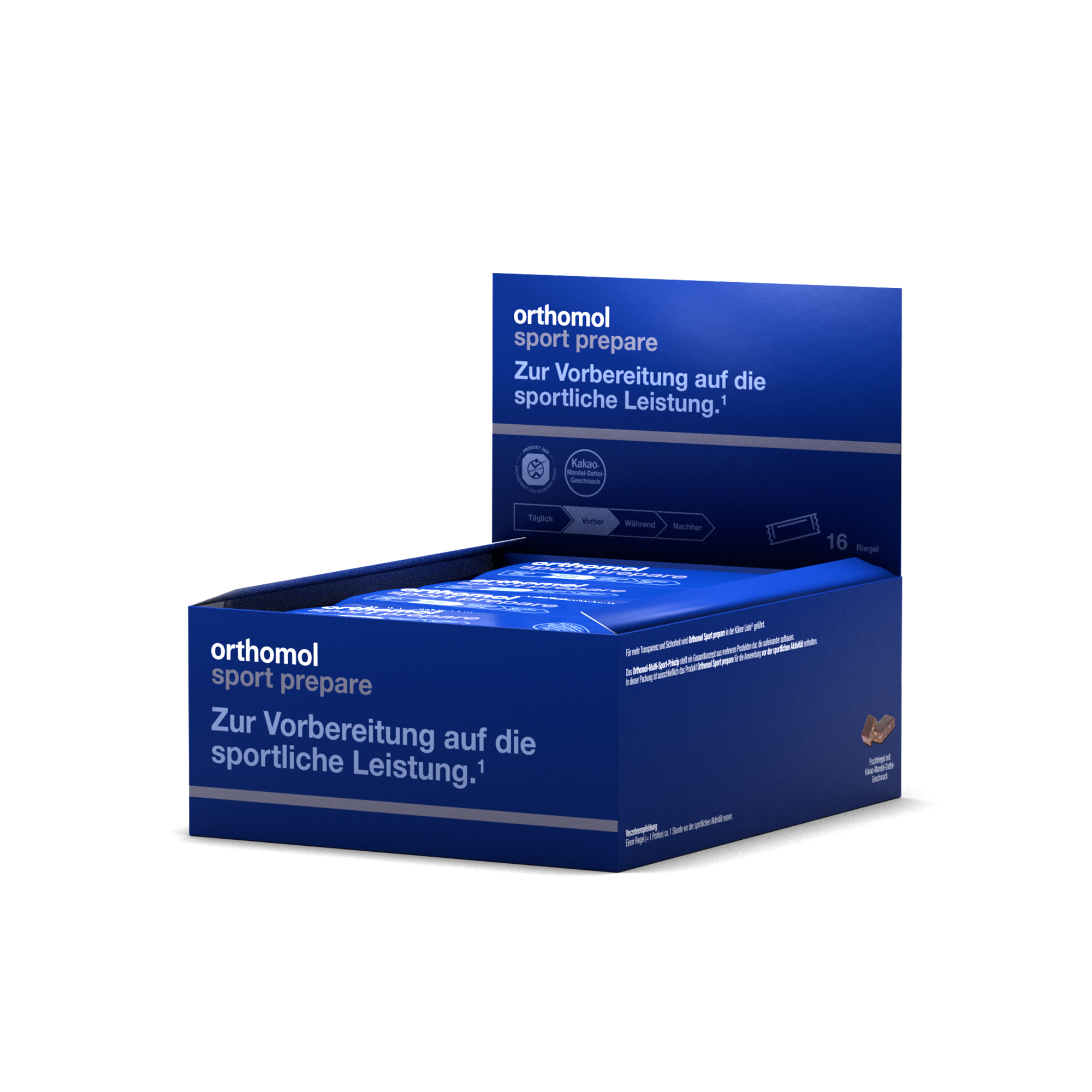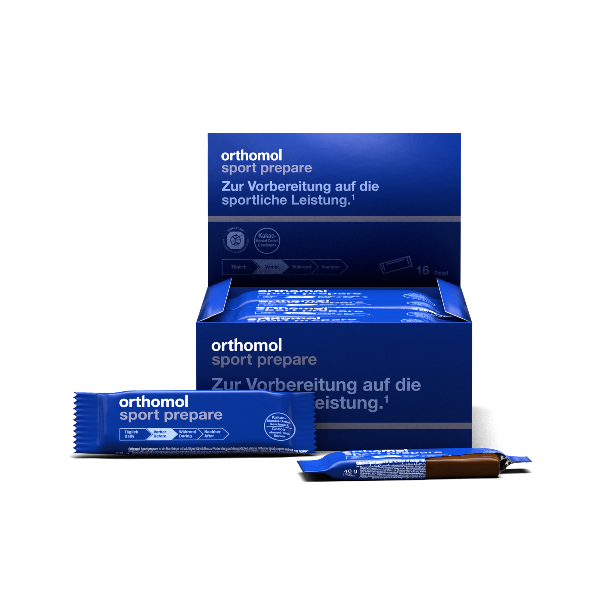 Orthomol Sport prepare ist ein Fruchtriegel mit wichtigen Nährstoffen zur Vorbereitung auf die sportliche Leistung. Koffein trägt zu einer Steigerung der Ausdauerleistung bei.