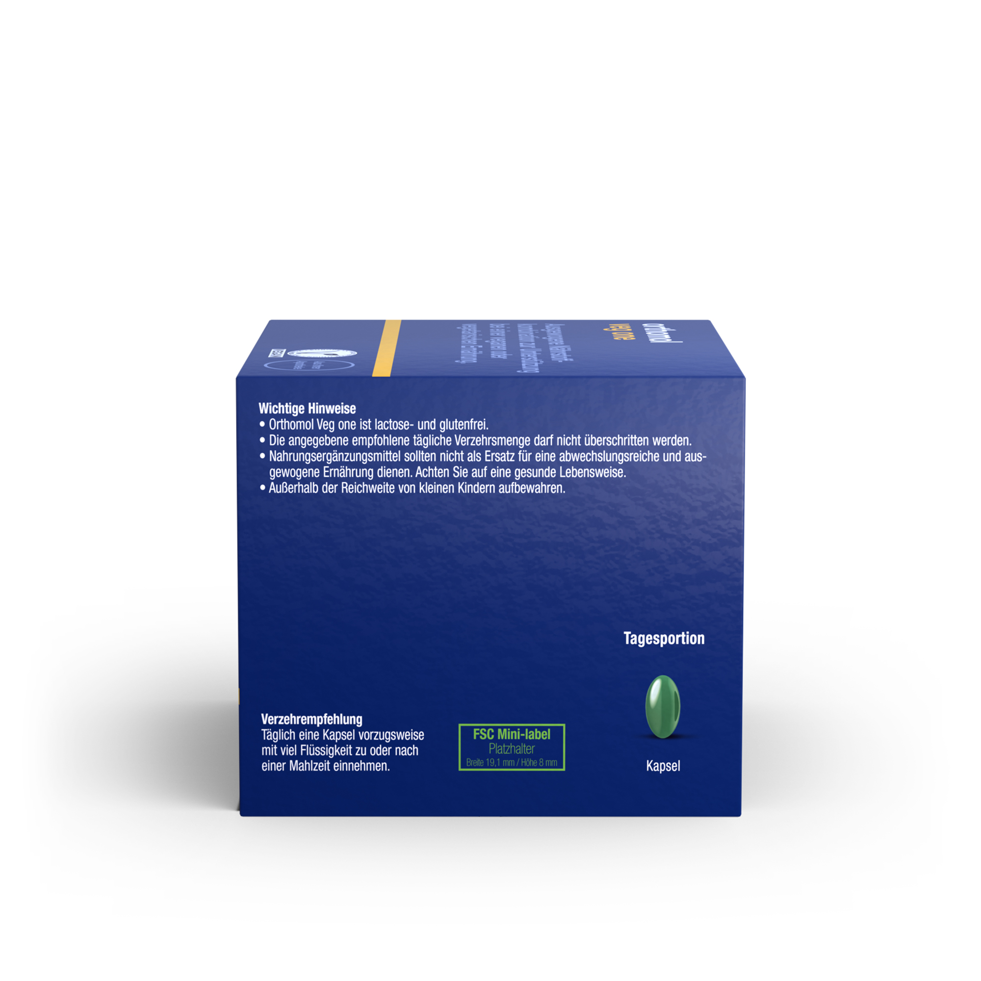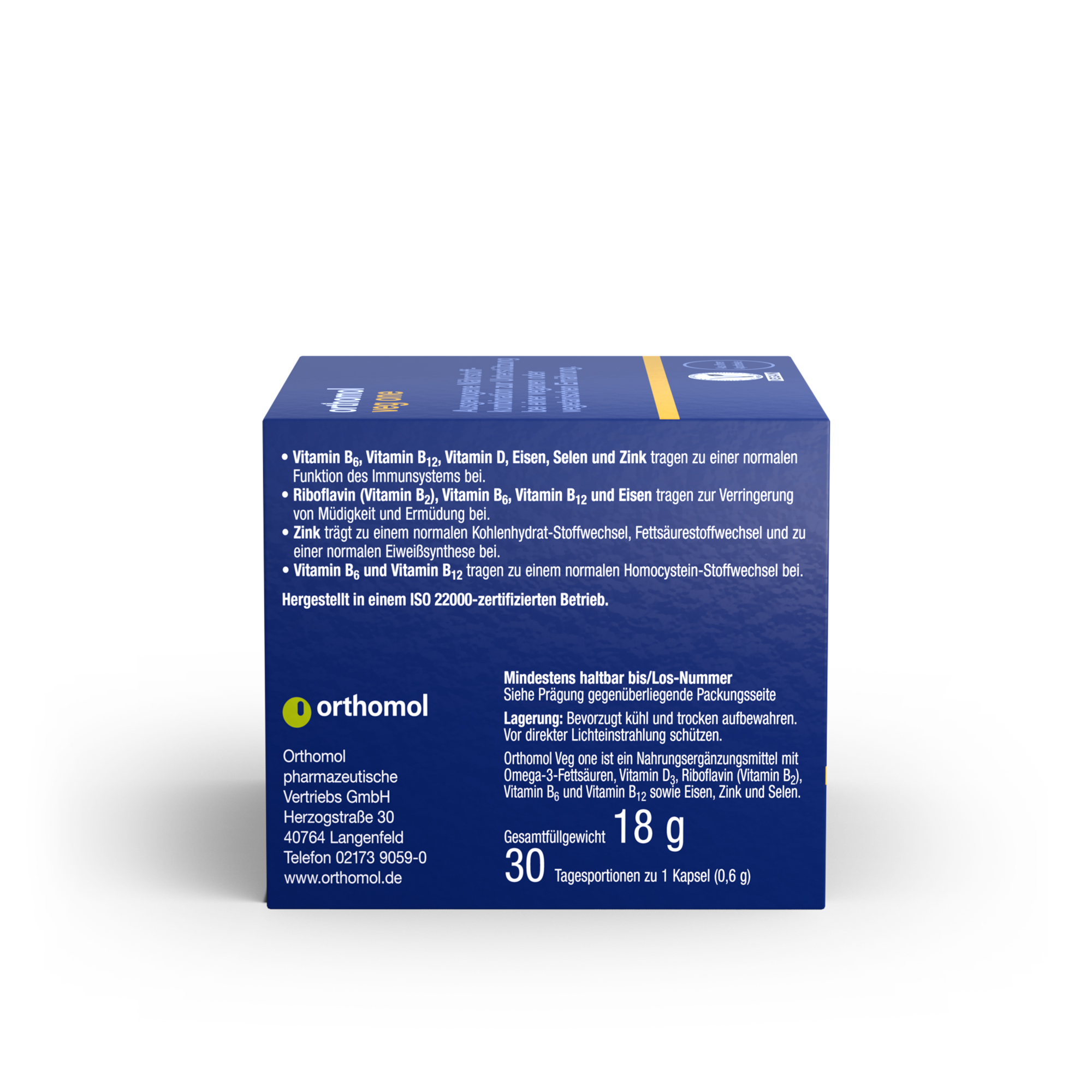 Orthomol Veg one ist ein Nahrungsergänzungsmittel zur Unterstützung bei einer veganen oder vegetarischen Ernährung.