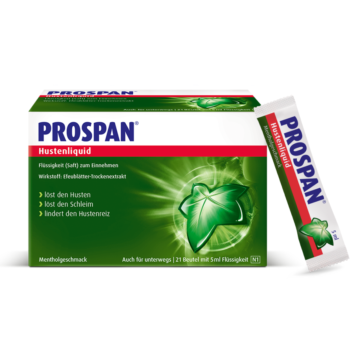 • PROSPAN®. STARK GEGEN HUSTEN: Husten kommt immer zu einem unpassenden Zeitpunkt. Prospan® Hustenliquid im Stickbeutel ist die praktische, schnelle und effektive Hilfe bei Husten und Bronchitis. Die 4-fach Kraft des einzigartigen Efeu-Spezial-Extraktes EA 575® ist in modernen Studien nachgewiesen1,2 und lässt Sie schneller wieder am Leben teilhaben.