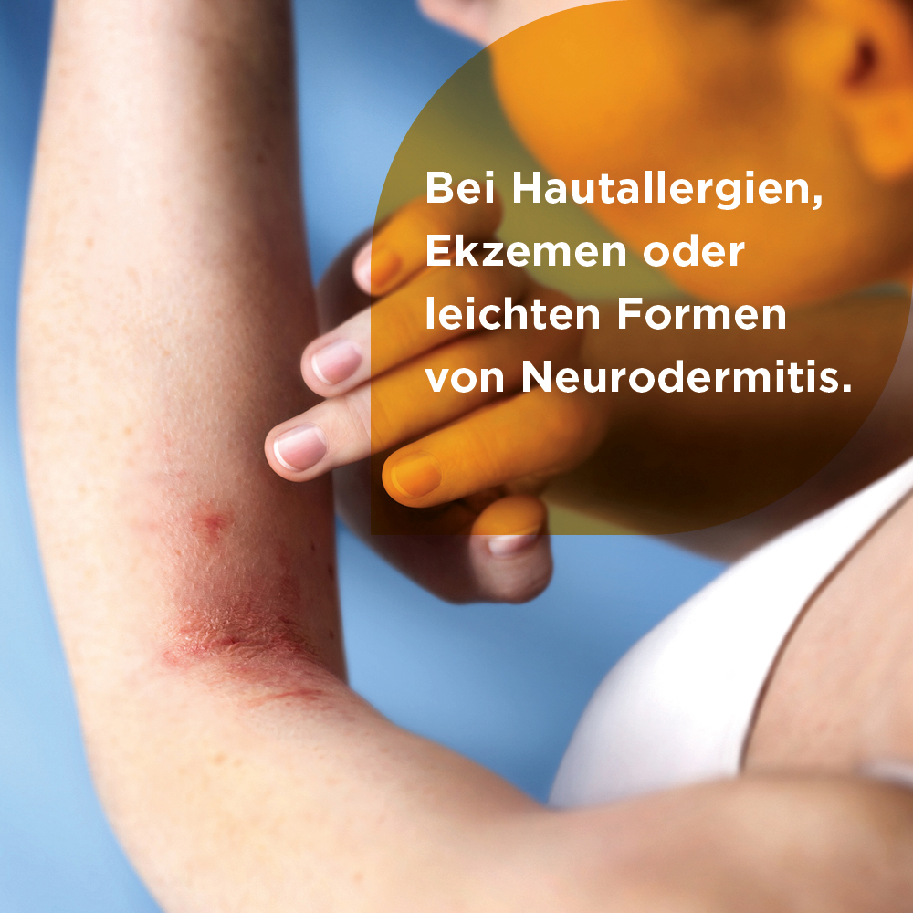 - Geeignet bei ausgeprägten und chronisch-entzündlichen Hautproblemen (bei Hautallergien, Hautentzündungen, Ekzemen, leichten Formen von Neurodermitis, Juckreiz)