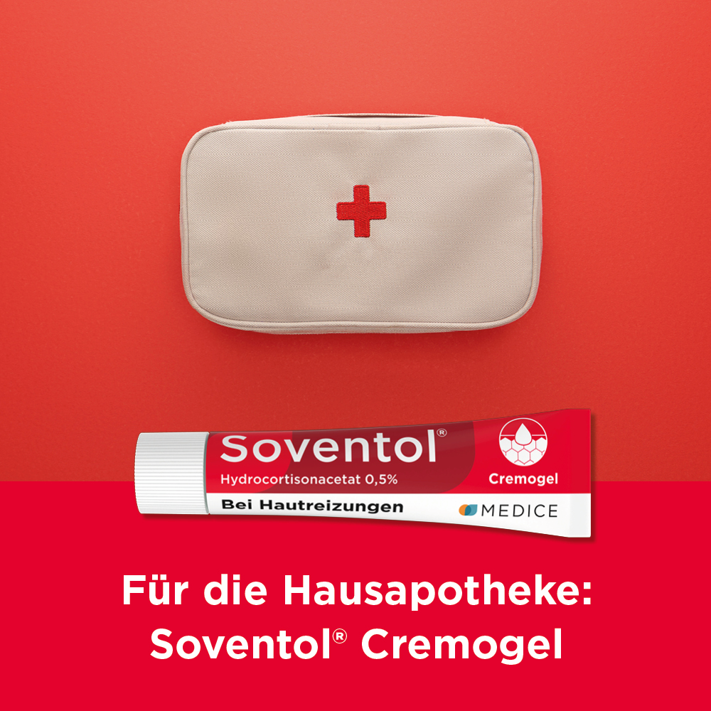 Akute und besonders ausgeprägte Haut-Irritationen wie zum Beispiel gereizte Sommerhaut (Sonnenbrand, Sonnenallergie, Mallorca-Akne), entzündete Insektenstiche und starker Juckreiz erfordern eine effektive Form der Behandlung. Hier hat sich Soventol® HydroCortisonACETAT 0,5% Cremogel bestens bewährt.